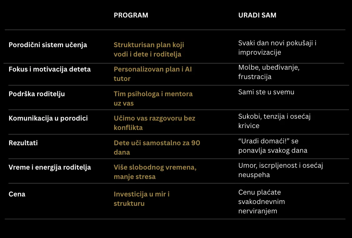 Ne. Program je za svaku porodicu koja želi više jasnoće, strukture i mira u svakodnevnom učenju.